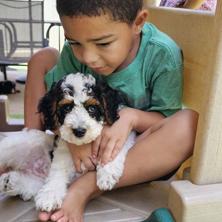 I'm Kelly L., the breeder behind So Adoodable located in Decatur, GA. Our mission is to raise healthy, happy, adorable mini bernedoodle puppies and connect loving families with their new best friends! We treasure each puppy in our program and give them all the attention and care that we possibly can. We work hard so our puppies can leave our home with confidence, ready to take on the world with their new family! We are a homeschooling family with 10 children so each puppy gets more than enough handling, stimulation, noise exposure,and love! Puppies complete both ENS (Early Neurological Stimulation) and ESI (Early Scent Introduction) on days 3-16! After introducing puppy mush around 4 weeks we begin the rigorous task of outdoor potty training! This sets our puppies apart in how far ahead of the game they are in potty training from the day you pick them up!