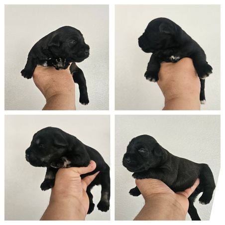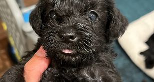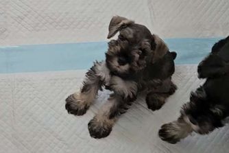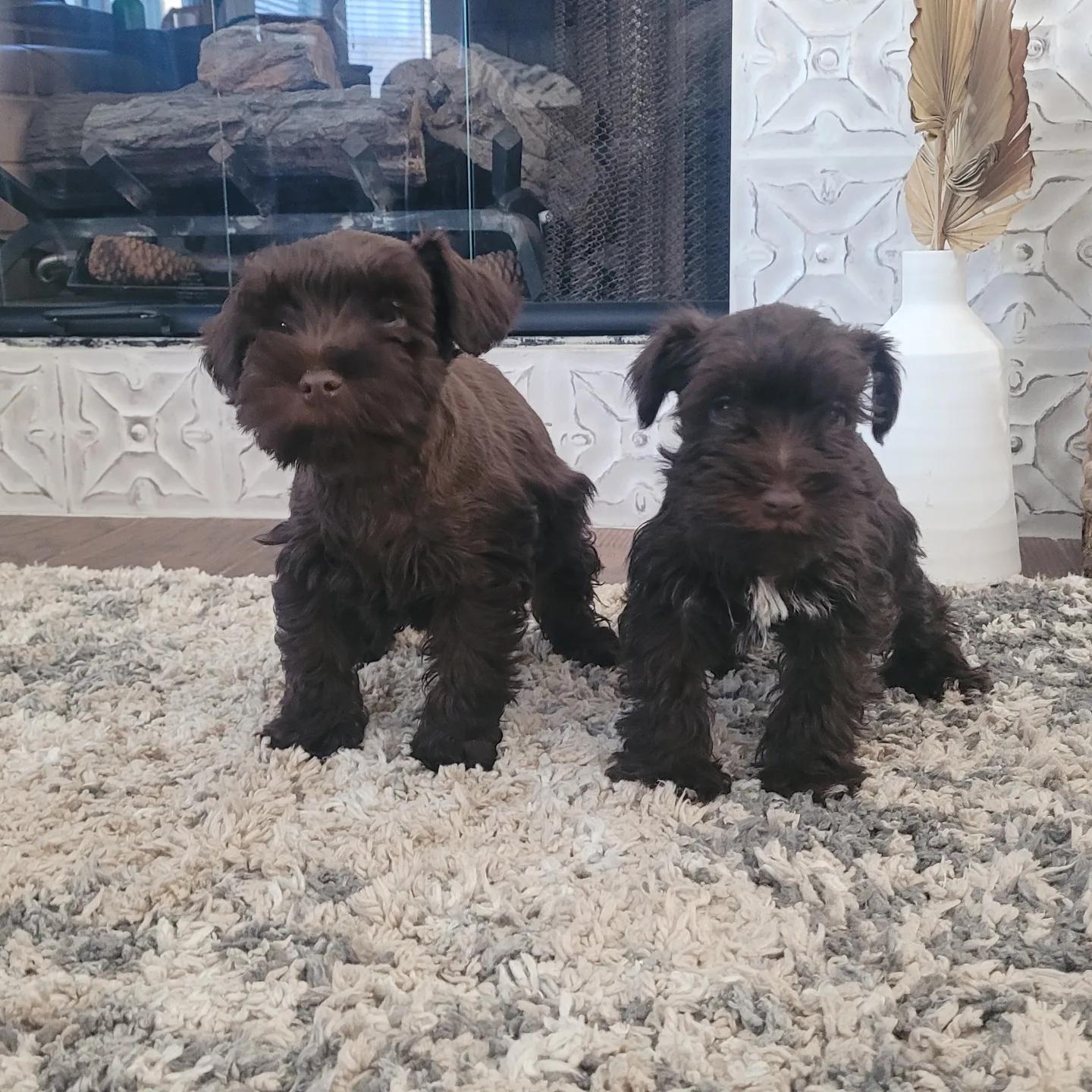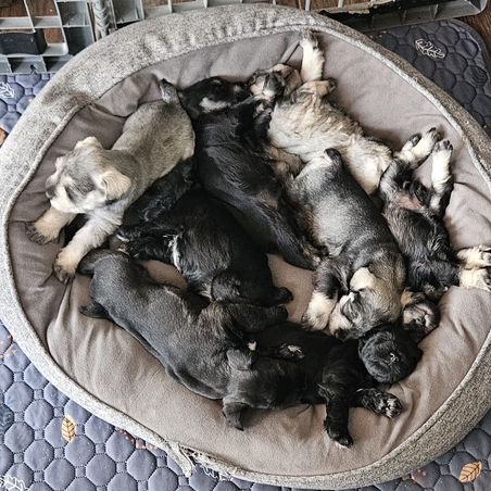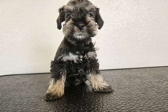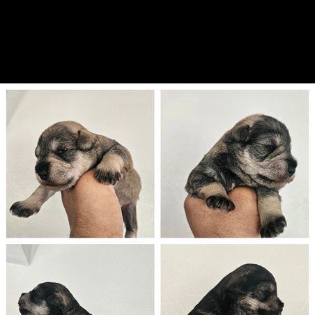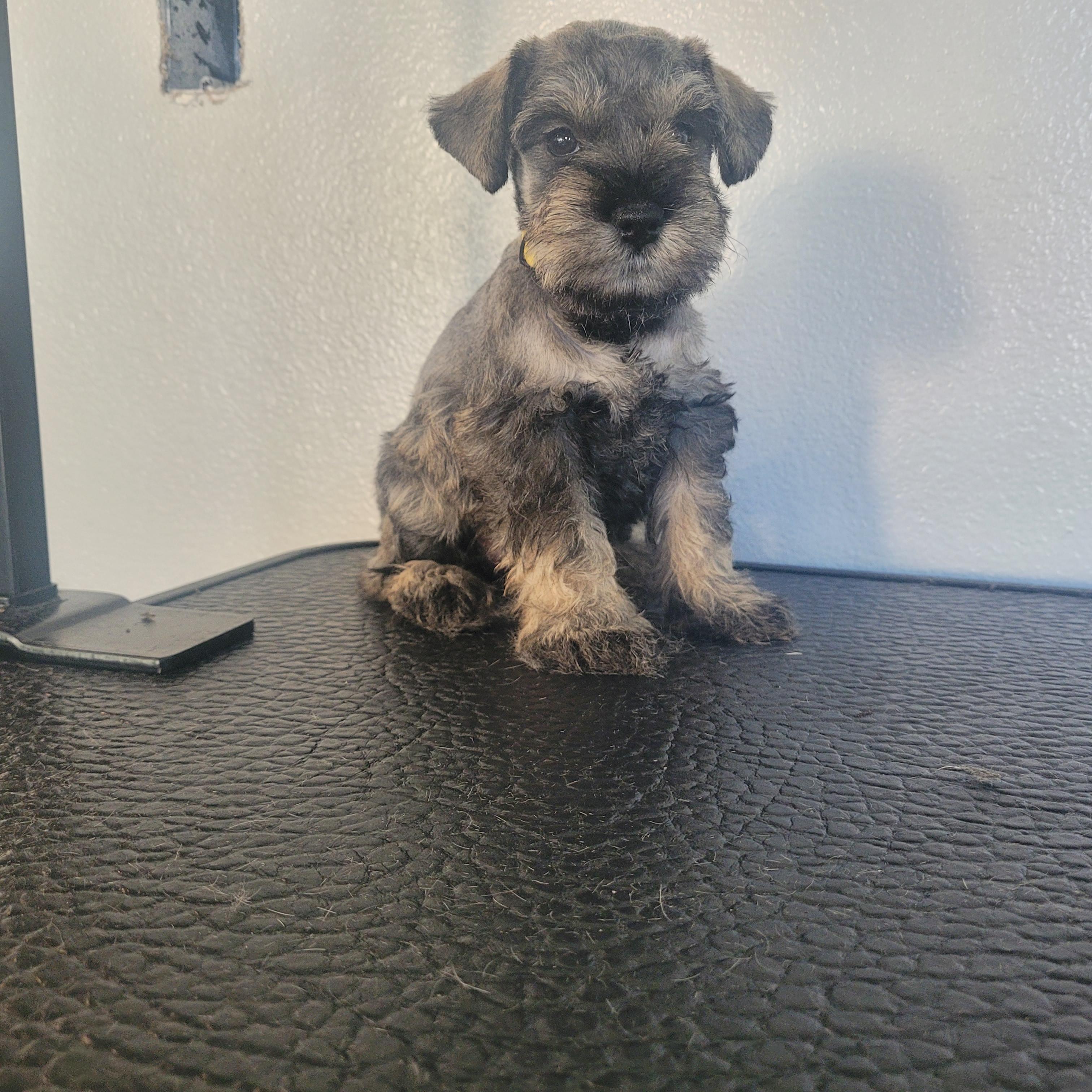 Our puppies include black and silver, black, and salt and pepper. Colors will vary depending on the parent dogs.