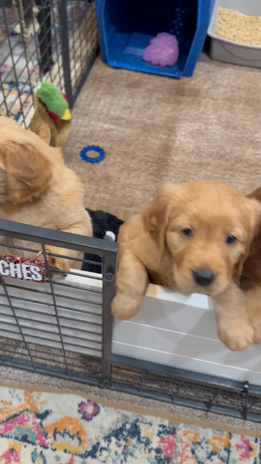 We couldn't be more happy with these two gems. We selected Maisy (Mew) and our oldest son selected Benji (Bulbasaur ). We have Benji over for a playdate today. After being home now barely a week we already know sit, stay for a little bit. Very gentle well mannered already. Both have already taken completely to the crate at night and even select it for naps often. So playful and smart. Looking forward to many years of good times with these two. I highly recommend this breeder and their program. Happy, healthy, smart puppies. They put so much love and work into these pups and it shows so much. THANK YOU!!