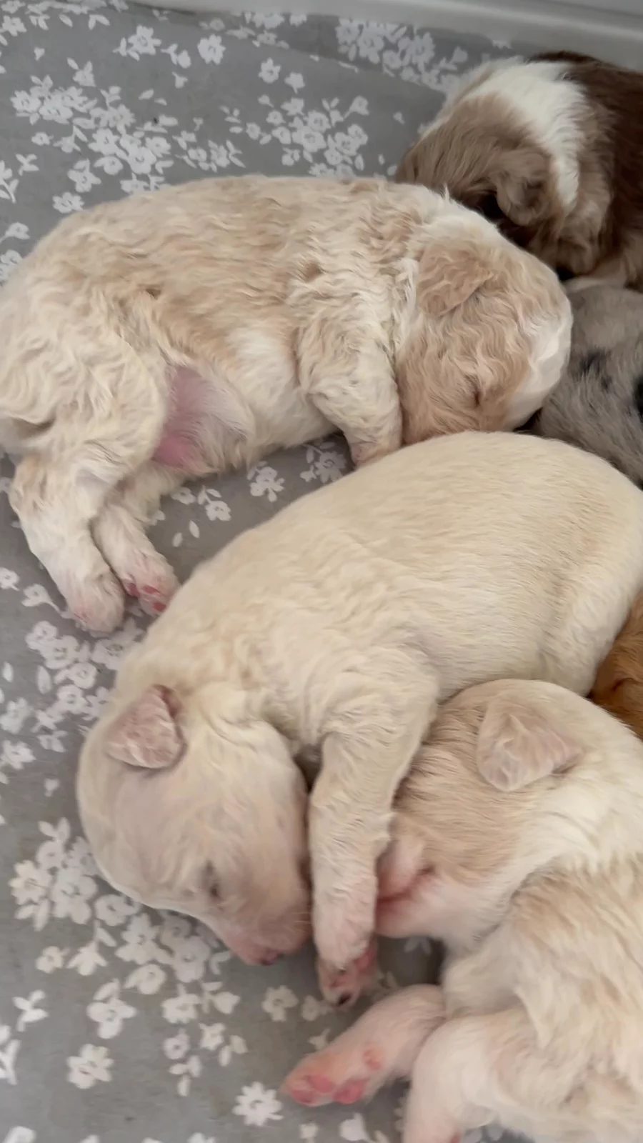 I'm Perla P., the breeder behind Socal Aussiedoodles located in Pomona, CA. Aussiedoodles are considered the Einsteins in the Doodle world. Our puppies are raised in our home puppy nursery and are raised around children so they have the tools to be well-rounded, beloved family members. We are dedicated to achieving excellence and healthy family pets, and we prepare them for their forever homes.