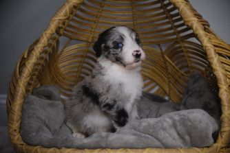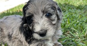Blue Ivy is a Blue Merle F1 (first generation Aussiedoodle). She is sweet, playful and very intelligent. She is DNA Embark tested and OFA Certified.