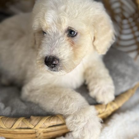 Sparky is a male Aussiedoodle. Carefully selected as a great representative of his breed, Perla decided to make him part of their program. Perla has passed Good Dog’s screening process, which involved a review of their breeding practices, environment, and the mental and physical health of their dogs.