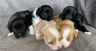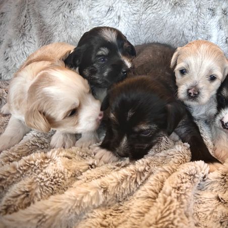 Our puppies include cream, chocolate, black white and tan, and black and tan. Colors will vary depending on the parent dogs.