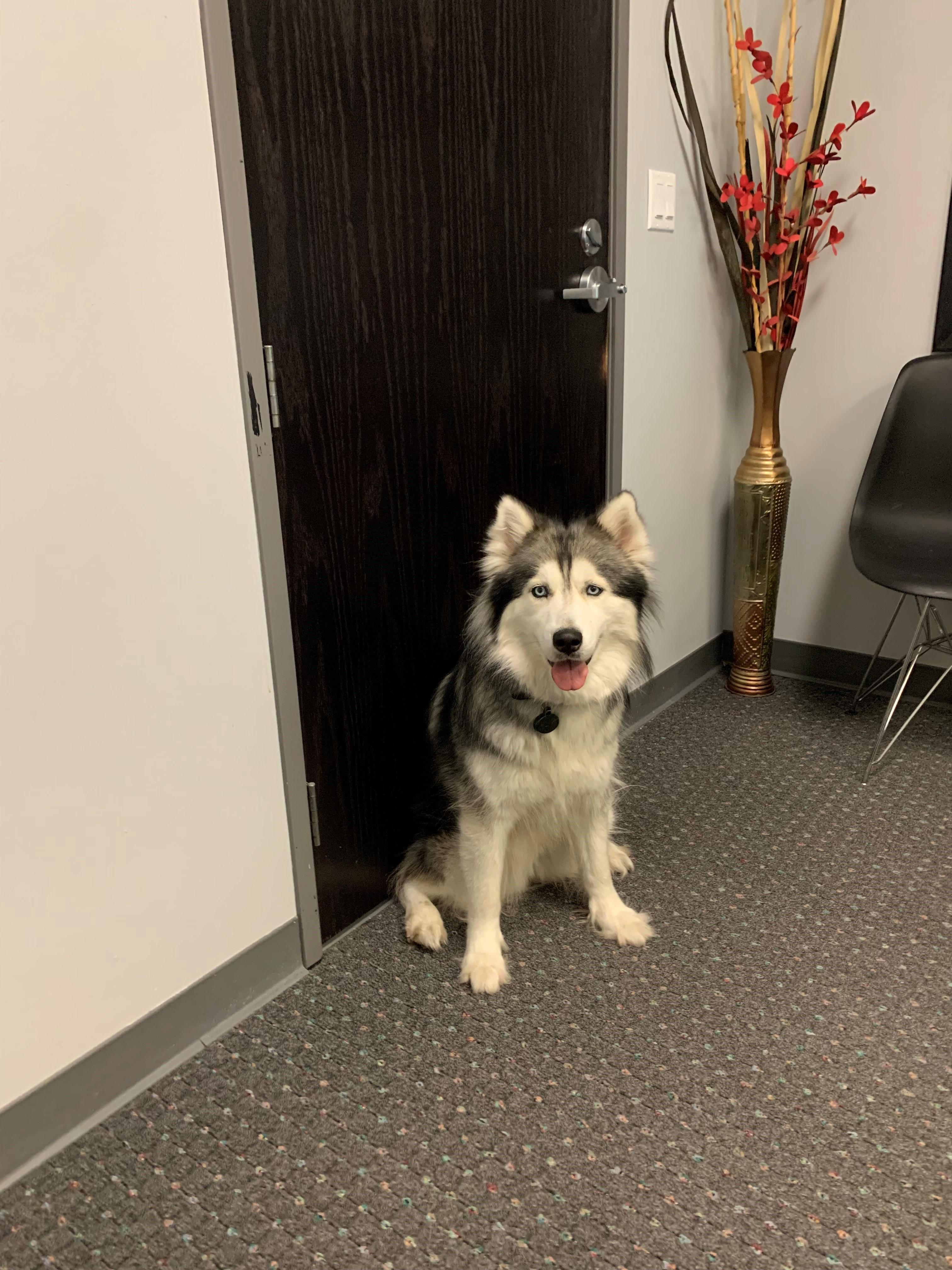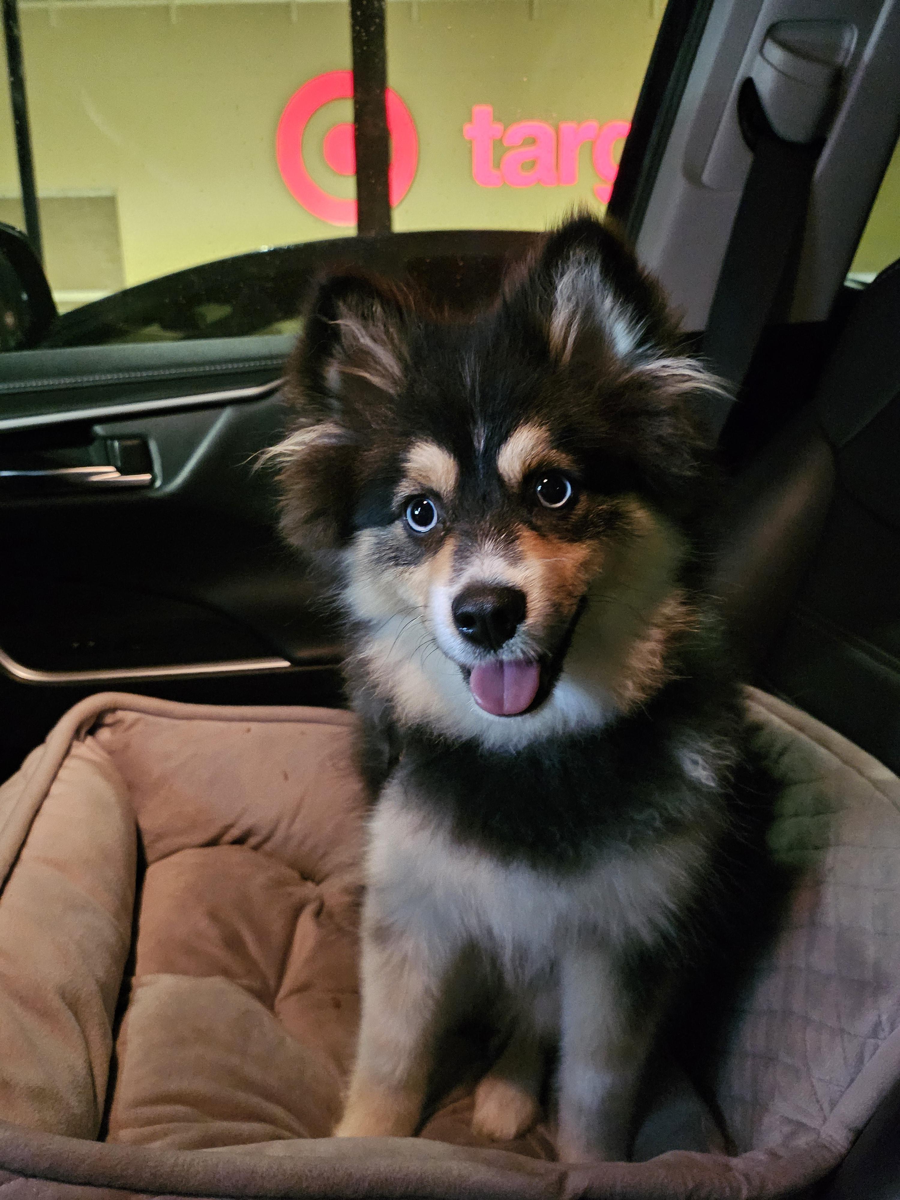 Fiona is a super sweet micro Pomsky weigh in it. Just 8 pounds. She has a very loving personality but can hold around with the bigger dogs.