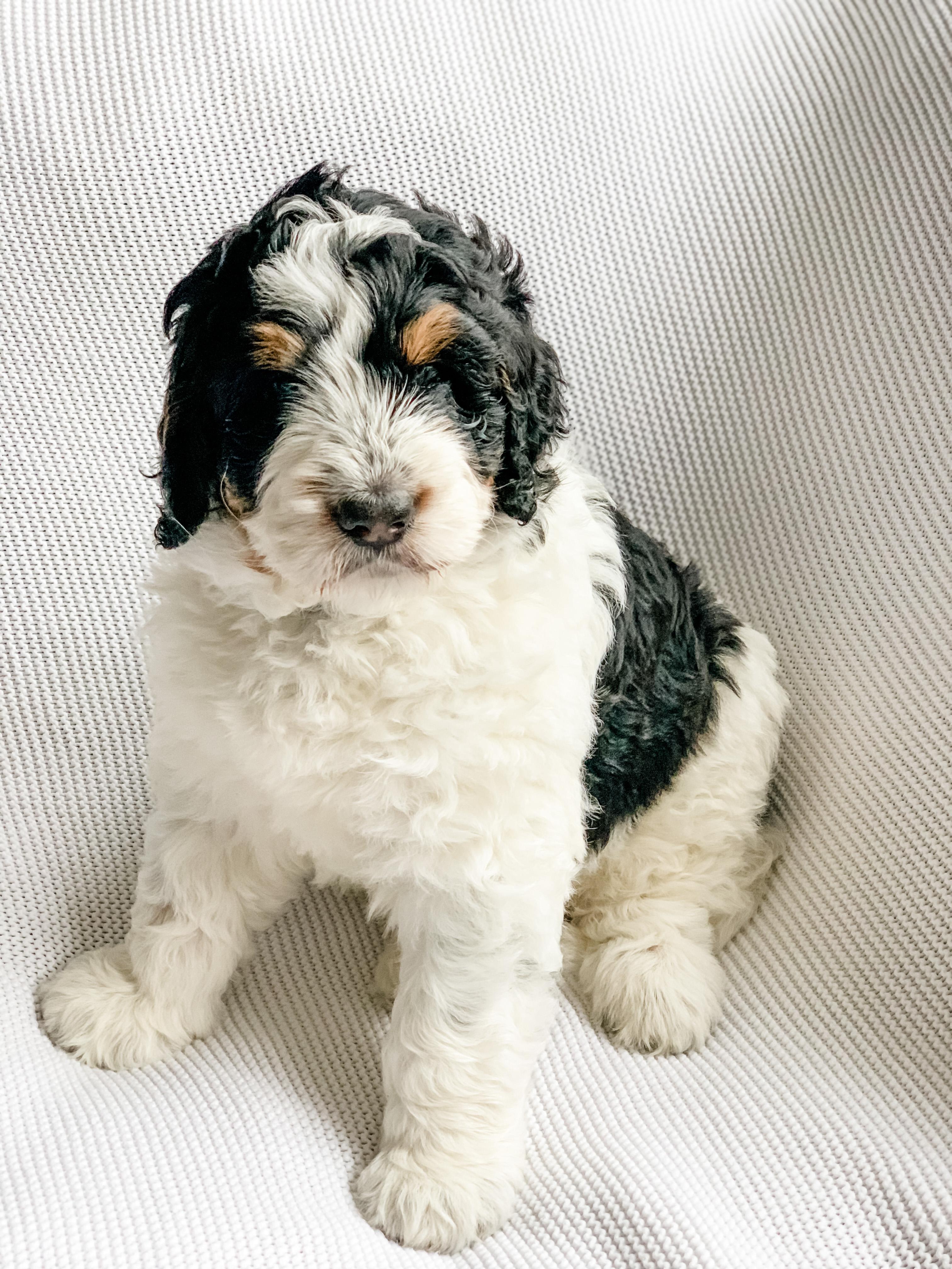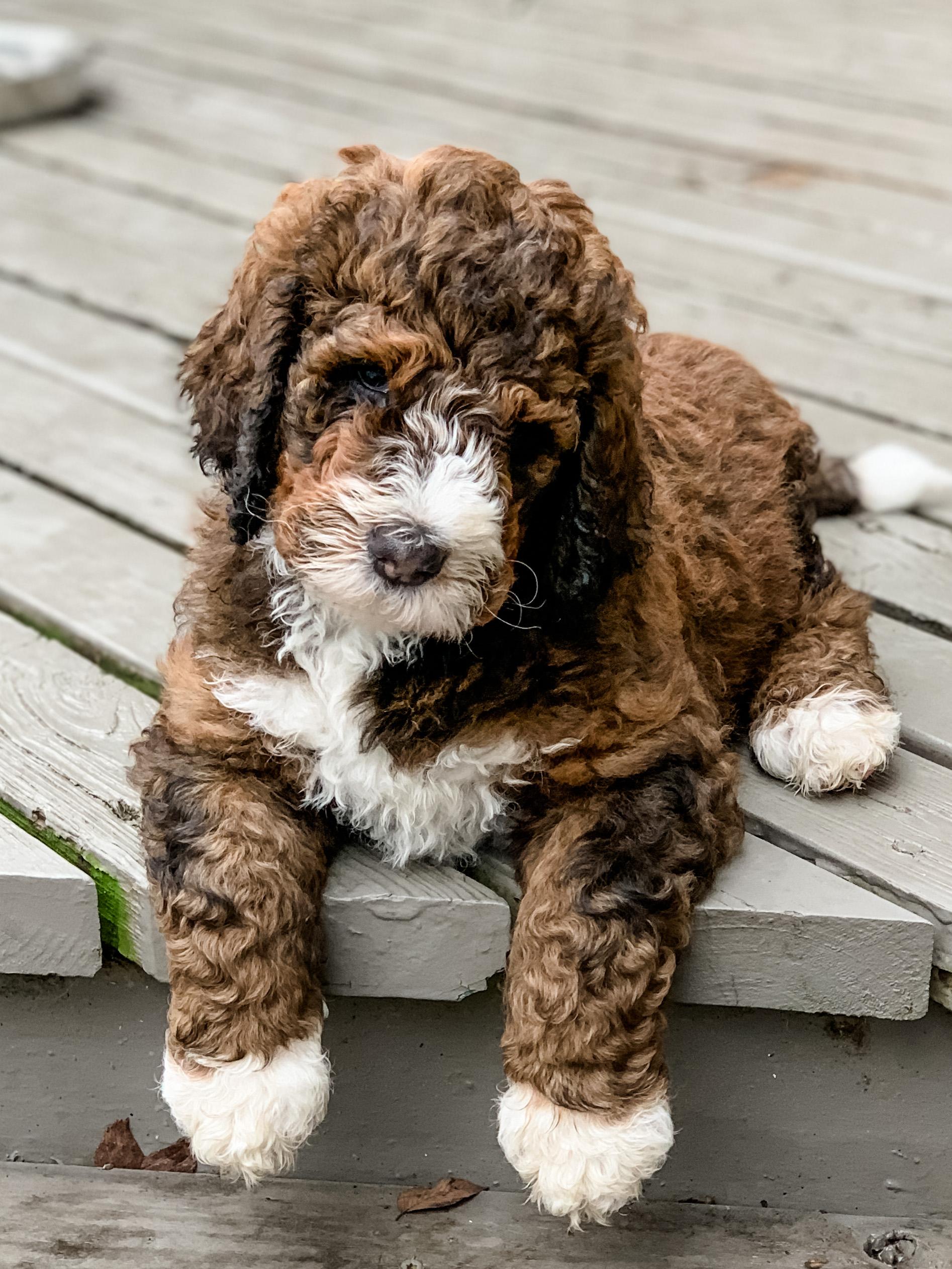 Our Bernedoodle puppies include black and white and tri-color. Poodle puppies include apricot, black, red, gray, white, and parti. Colors will vary depending on the parent dogs.
