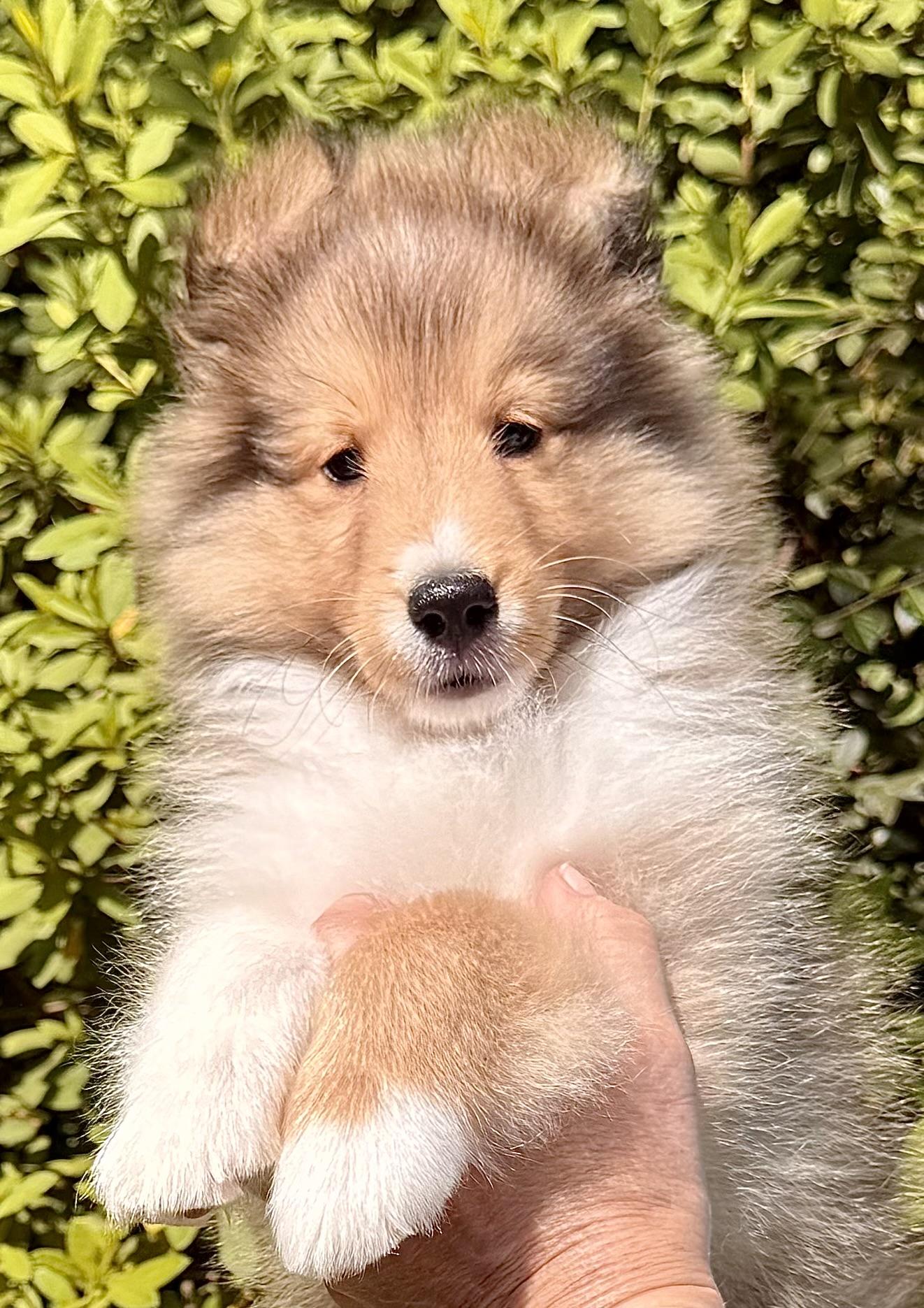 Our puppies include sable and white and blue merle white and tan. Colors will vary depending on the parent dogs.