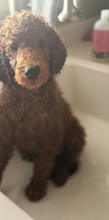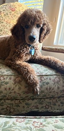 We have always loved dogs, but brought home our first standard poodle in 2021 with the hopes of training her to be a therapy dog (we succeeded!). As we saw how versatile, loyal, and trainable the poodle is, we quickly fell in love with the breed! Seeing the way a well-raised dog could revolution the life of a family or individual, we began to research how to become breeders ourselves.