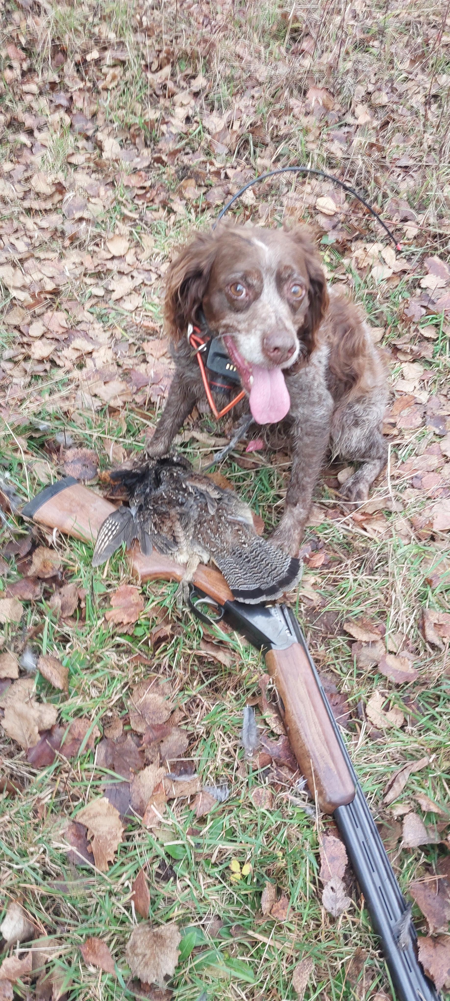 Olive is a UKC Champion. Olive is a great grouse dog. Has hunted wild quail and pheasants. A lady in the house, so fun to hunt behind in the field.