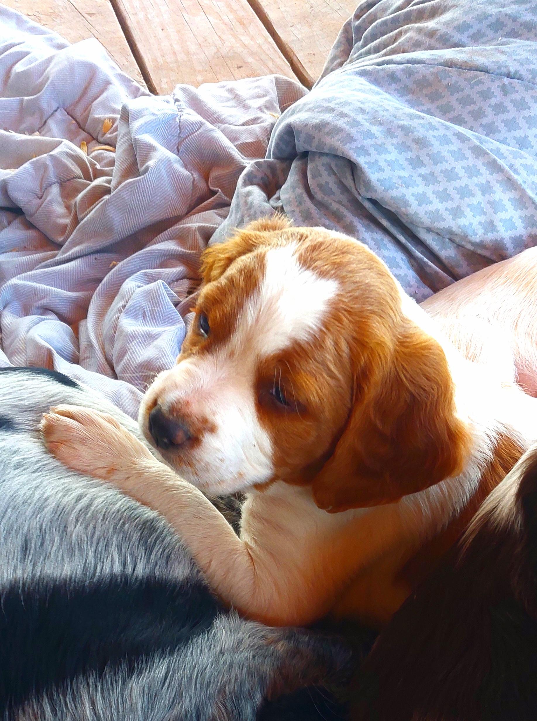 Jyncks is a male French Brittany. Carefully selected as a great representative of his breed, Kelly decided to make him part of their program. Kelly has passed Good Dog’s screening process, which involved a review of their breeding practices, environment, and the mental and physical health of their dogs.