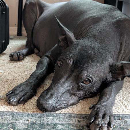 Taika is my foundation dog, and means everything to me. She has the ideal Xolo temperament, being approachable by strangers and willing to interact, but just as eager to ignore them and focus on me instead. She is my main breed ambassador, accompanying me to most dog events, as well as my life saver as my Service Dog. Everyone who meets her is quick to fall in love, and for good reason. She is the dog who got me interested not just in professional training, but in dog sports, showing, and breeding.