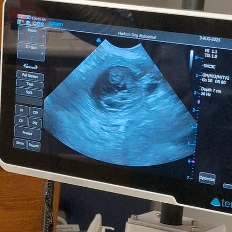 I am absolutely thrilled to announce that the breeding successfully took and the ultrasound confirmed at least four puppies!