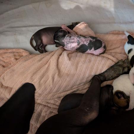 Our puppies include hairless and coated coat varieties. Coat types may vary depending on the parent dogs.