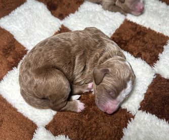 Puppy prices include a $400 non-refundable deposit and between $2,100 - $3,100 final payment, before taxes & fees.