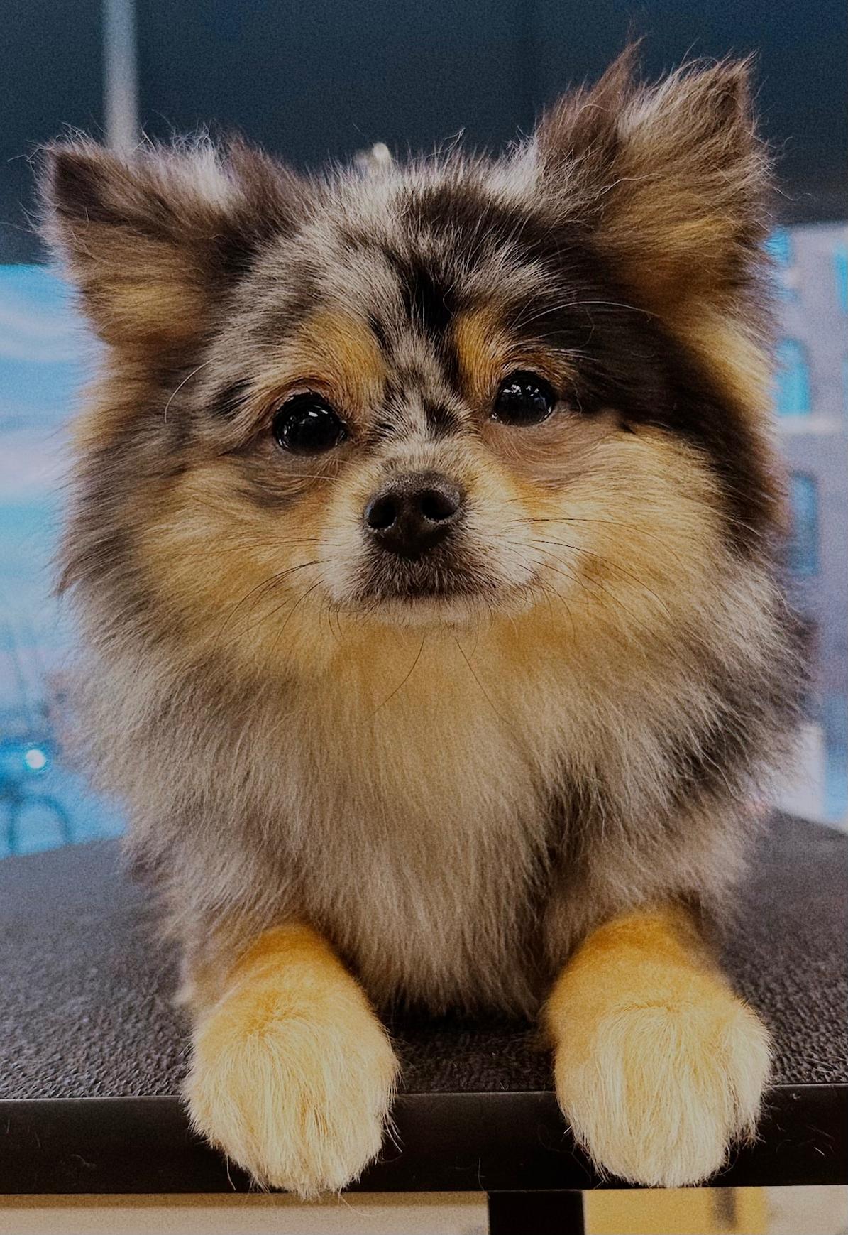 Mika has an all black coat with only a few white hairs on her front paws. She is everything you could ask for in a pomeranian.