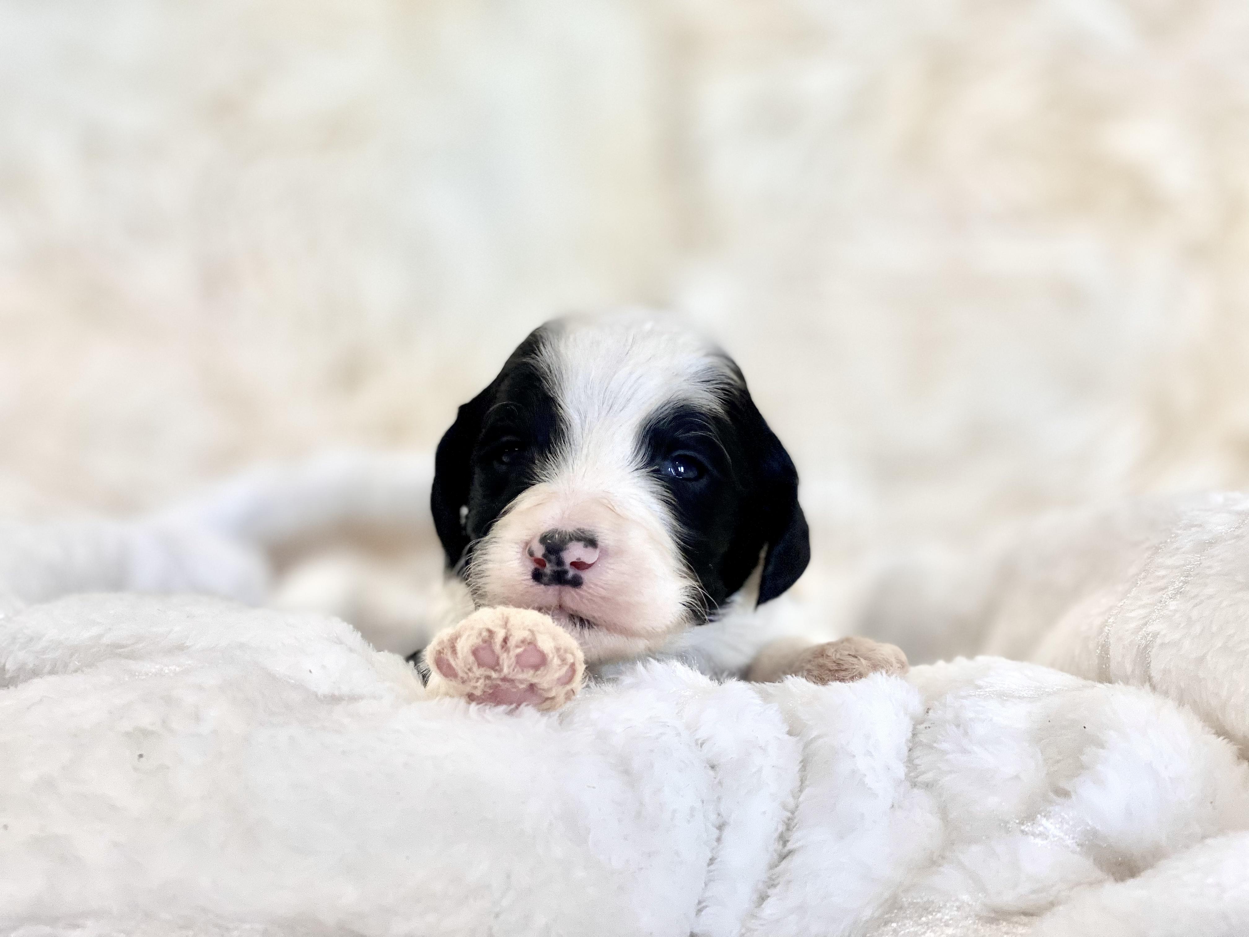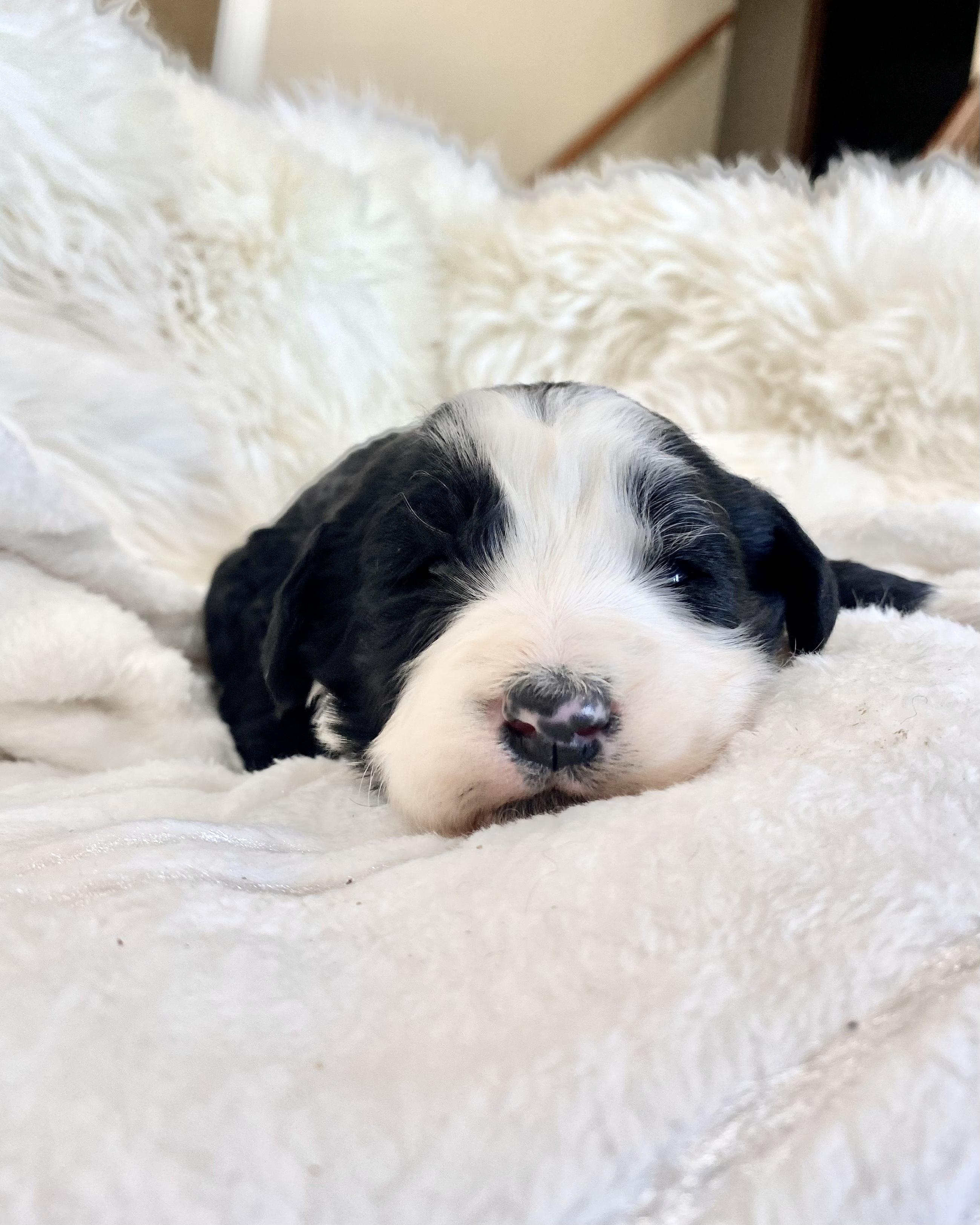 I'm Amy, and Joe D., the breeder behind Son of a Poodle Sheepadoodles located in Blackfoot, ID. We are huge animal lovers and have a special place in our hearts for our dogs. We want to provide top-quality beloved companions. We cherish each of our dogs and puppies, and we do everything we can to make sure that they get the best lives possible. That includes everything from choosing healthy parents with good temperaments, to proper socialization and daily care, to placing them in loving homes with wonderful families.