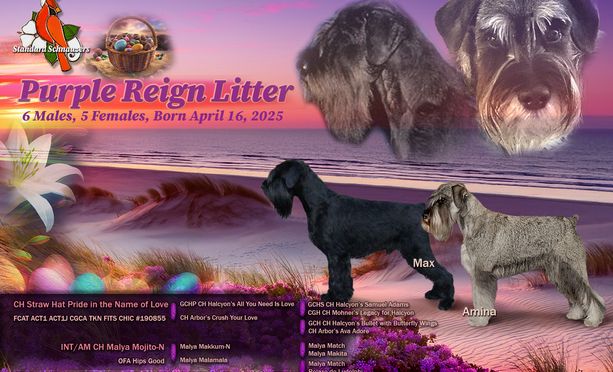 We breed for health, temperament, structural correctness according to the national Standard Schnauzer Club of America (SSCA), and, as working dogs, for performance.