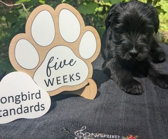Our Sires and Dams are OFA-tested conformation champions with performance titles. Songbird Standard Schnauzer puppies are raised using Avidog and Puppy Culture protocols to ensure they have a strong foundation to becoming the excellent family companions they are bred to be.
