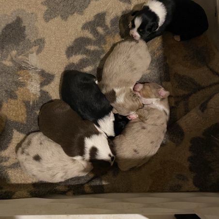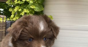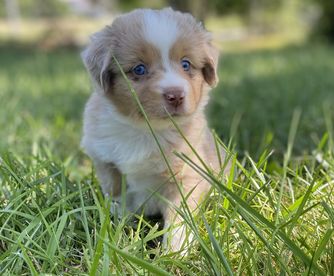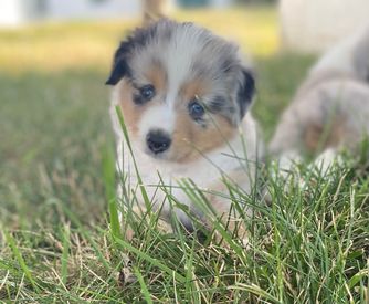 Hello All, I must say it took some time in researching for our precious angel whom our family now calls "Louie". I stumbled across Louie's sweet face, under Cheryl who runs Sonlight Ridge Aussies Farm. My heart knew right away he was the one. Those sky blue eyes. Merle color. Unique spots. Upon reaching out to Cheryl, her response was welcoming,speedy, and polite. Our conversation was filled with such grace over sweet Louie. I couldn't wait to meet her. Cheryl offers a fair meet and greet option, by meeting halfway or arriving on their beautiful farm. We chose to take the drive for ours. The views and excitement grew while headed to Sonlight Ridge. Once we arrived I saw little Louie beside Cheryl walking towards us. The moment had finally arrived. During our visit Cheryl supplied us with most insightful knowledge on these mini aussies. Her presence was so inviting to ask any questions. She even supplied us with a sample bag of his food, second round of dewormer, couple toys, and a blanket filled with his precious mommy's scent. Most importantly a folder containing his vet record of his first shot and microchip implant in case he ever lost his way home. This folder also showed us many other things we needed to know about Louie's feeding, registration of his microchip, etc. Cheryl absolutely delivered much more than we could have dreamed of. The way she cares for man's best friend told me all I needed to know so if you haven't already, check out Sonlight Ridge Aussies. I can guarantee you will not be disappointed.