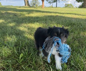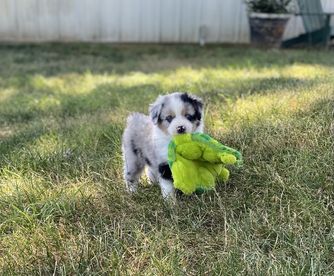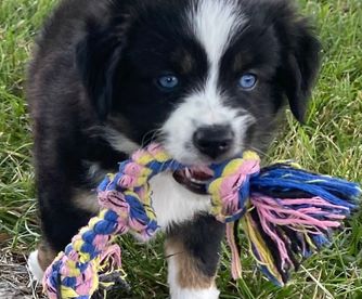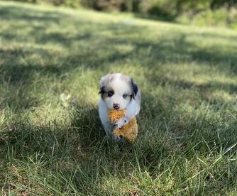 Our Toy Australian Shepherd puppies include black tri, blue merle, red merle, and red tri. Miniature Australian Shepherd puppies include blue merle, black tri, red tri, and red merle. Colors will vary depending on the parent dogs.