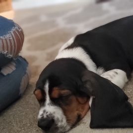 Sonne is a female Basset Hound. Carefully selected as a great representative of her breed, Theresa decided to make her part of their program. Theresa has passed Good Dog’s screening process, which involved a review of their breeding practices, environment, and the mental and physical health of their dogs.