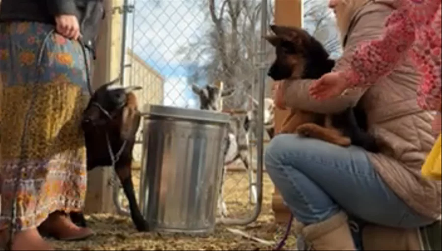 Sadie met a dairy goat for the first time today! She smelled her with interest while giving her the space she wanted. Gentle introductions like these introduce the idea of farm life, which can be helpful for families who want help from a German Shepherd. Her first instincts were to be curious and to follow my lead. This is a great age to stretch a puppy's sense of what's possible and acceptable. By the time summer comes, they'll know how to keep up with whatever outdoor plans are on the schedule.