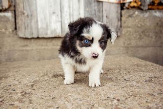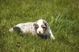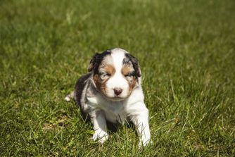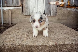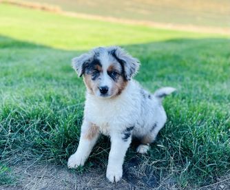 Our German Shepherd puppies include sable and black. Miniature American Shepherd puppies are blue merle. Colors will vary depending on the parent dogs.