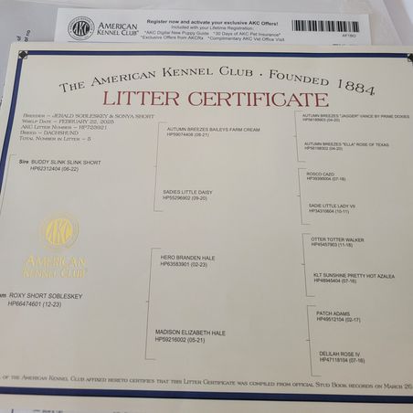 Lost my baby at 19. She was so caring and knew the hurt I felt. Got my baby girl from her. We picked her up we got to meet her mom ,dad and aunt. Got a gift bag with everything you need. Akc papers family tree ,vet reports was gave to will buy again in future great seller with a true heart of gold. That loves her babies. My new baby sleeping right beside me now. I'm so happy I took the chance..thanks so much