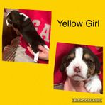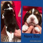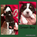 Our puppies include red and white, blue tan and white, and black tan and white. Colors will vary depending on the parent dogs.
