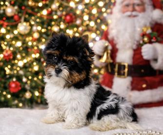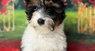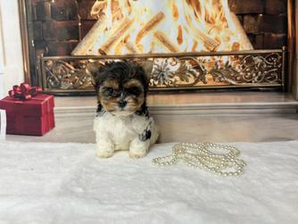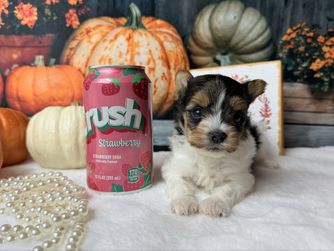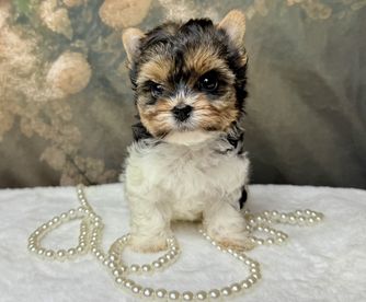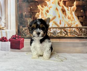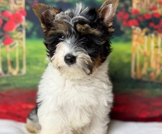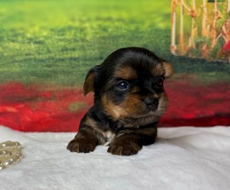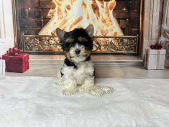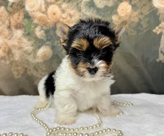 Our Yorkshire Terrier puppies are black and tan. Biewer Terrier puppies are black tan and white. Colors will vary depending on the parent dogs.