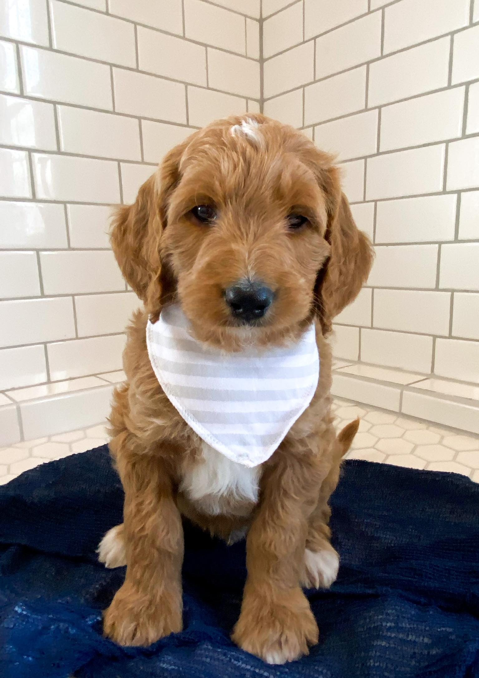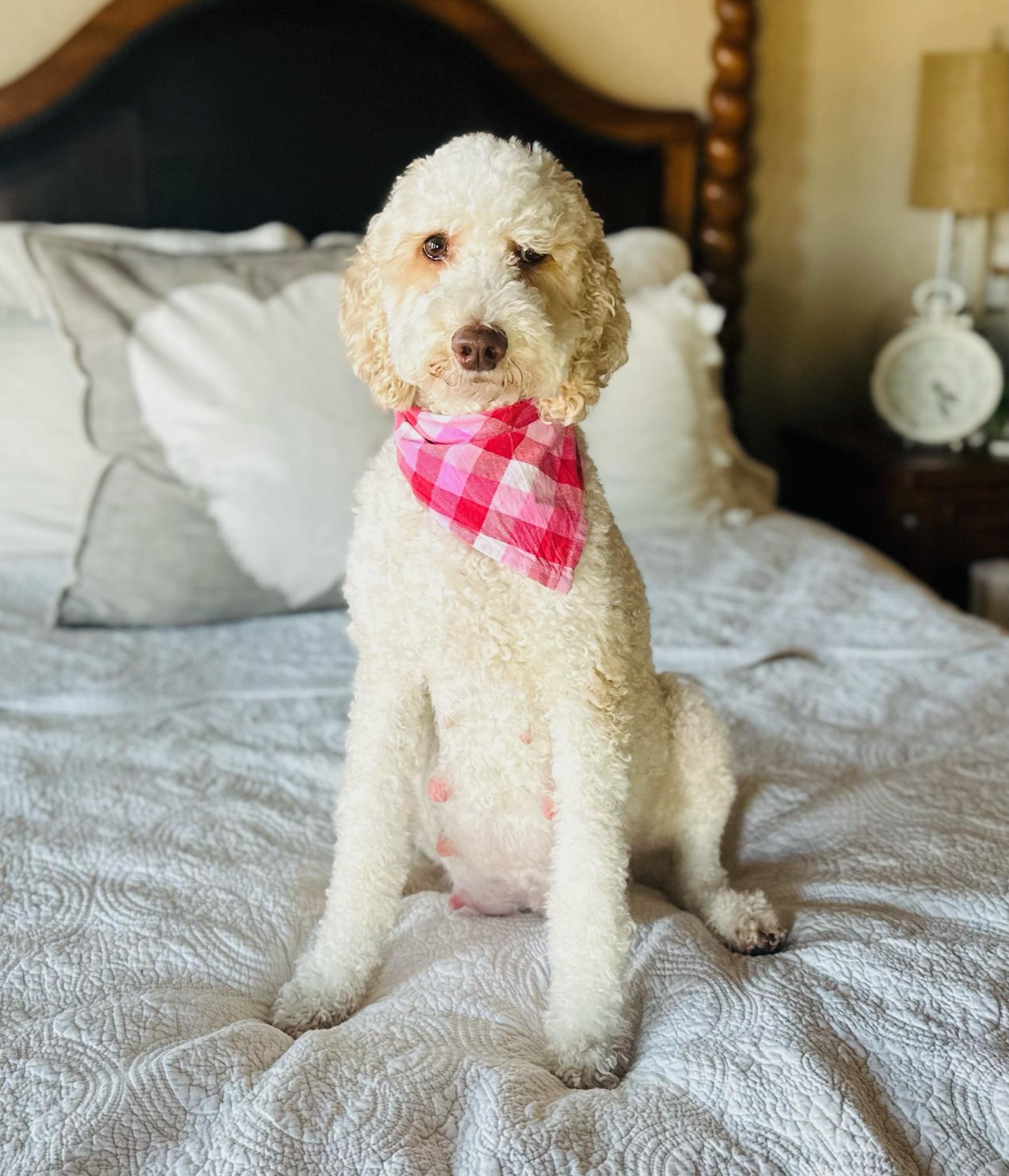 Tucker is a male Goldendoodle. Carefully selected as a great representative of his breed, Julie decided to make him part of their program. Julie has passed Good Dog’s screening process, which involved a review of their breeding practices, environment, and the mental and physical health of their dogs.