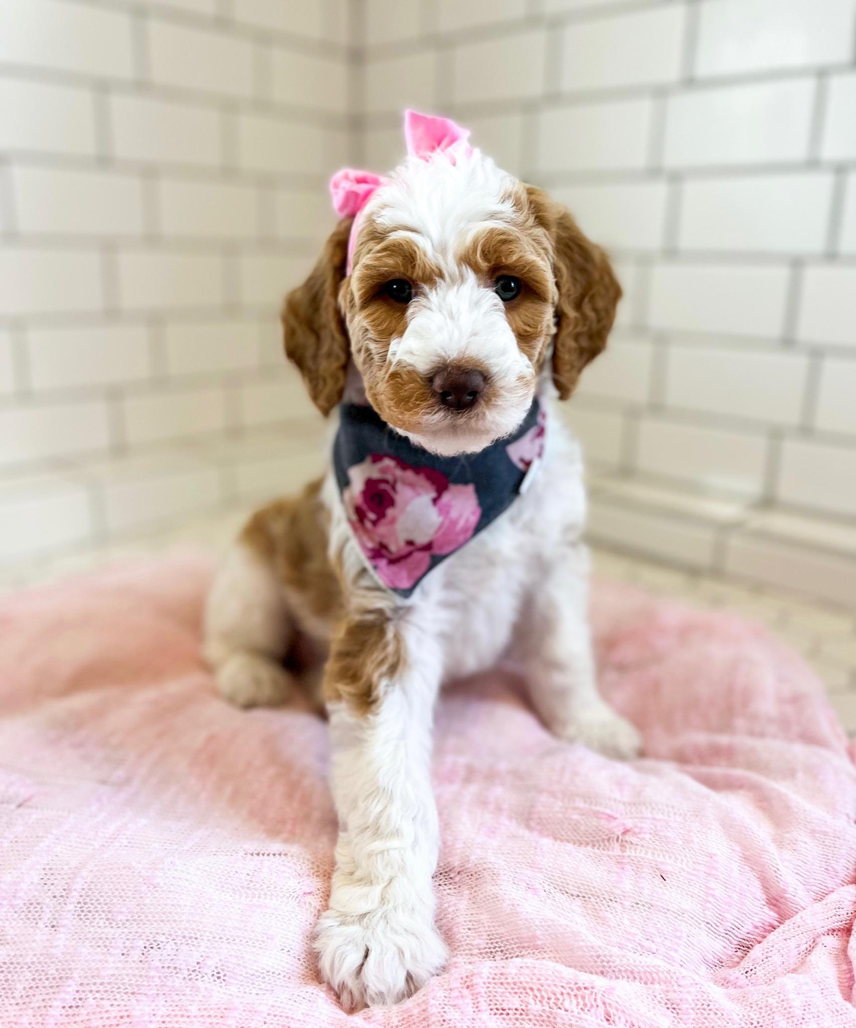 Our Poodle puppies include apricot, red, and parti. Goldendoodle puppies include apricot, red, and parti. Colors will vary depending on the parent dogs.