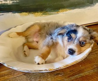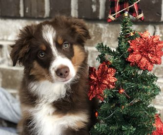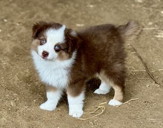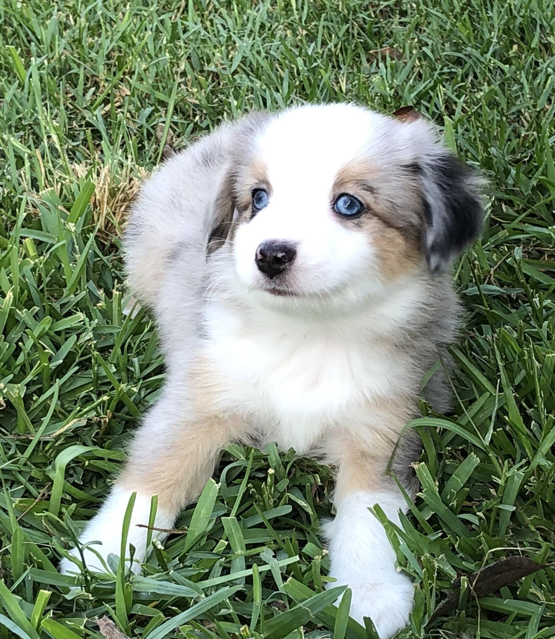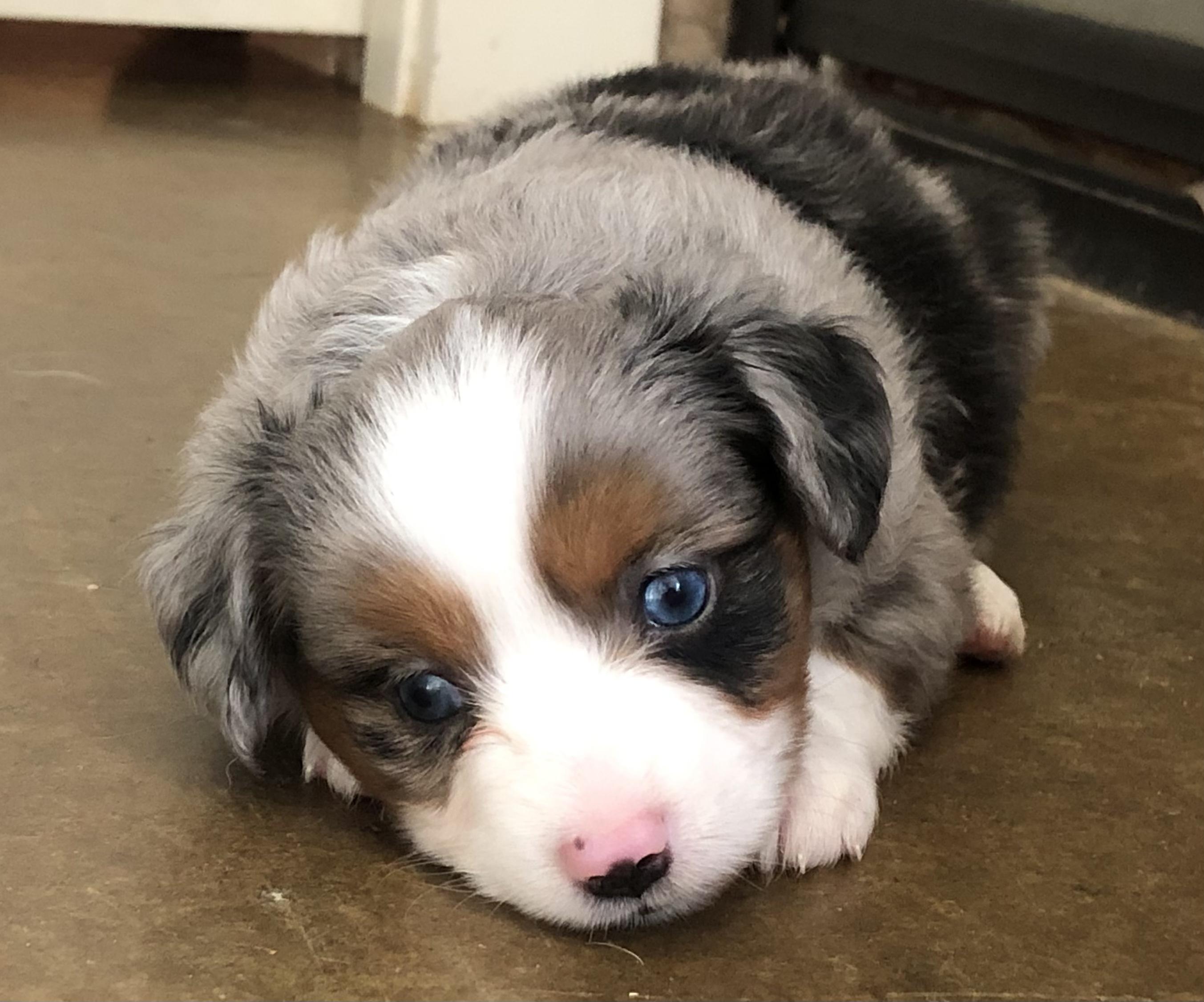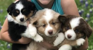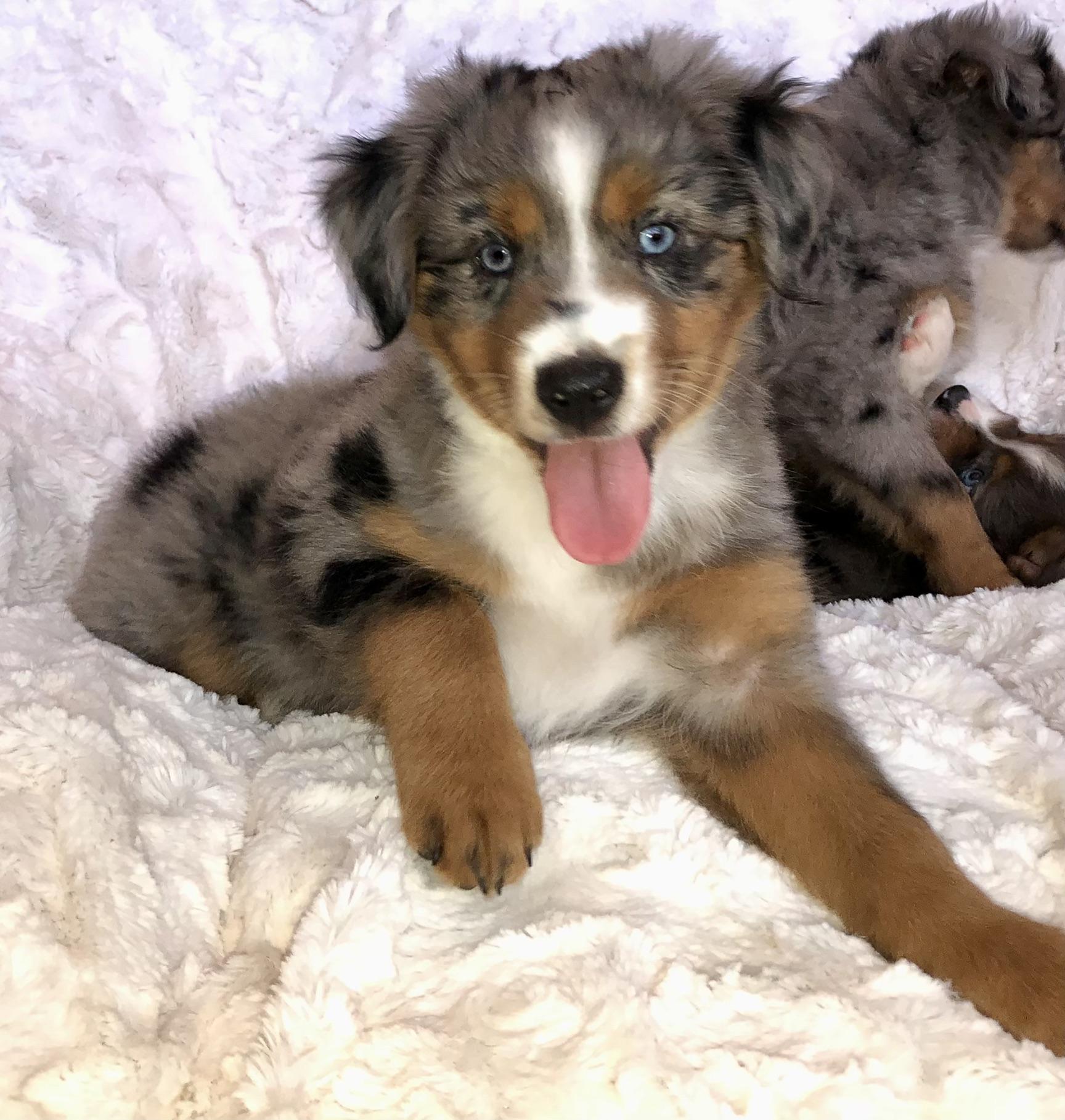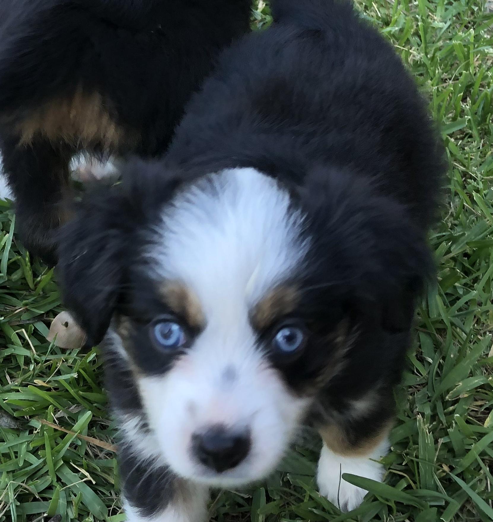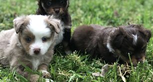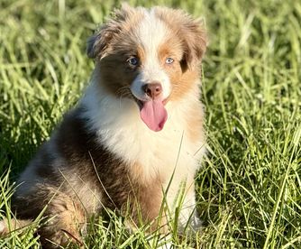 Our Toy Australian Shepherd puppies include black tri, blue merle, red merle, and red tri. Miniature Australian Shepherd puppies include blue merle, black tri, red tri, and red merle. Colors will vary depending on the parent dogs.
