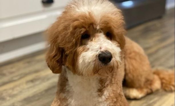 Rio's coat is Red Tuxedo Labradoodle with white accents on the head, face, chest, paws and tail. He has been thoroughly tested as a Breeder Dog, including, hips, elbows, genetics, and eyes.