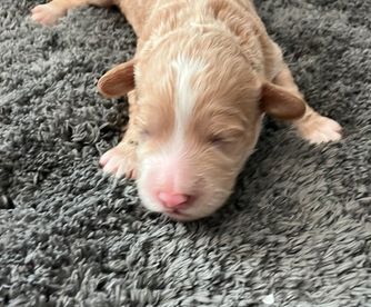“He has had the series of puppy shots and has a microchip. You will receive his medical records to verify health. You will also receive a blanket with the scent of the mother and the litter. Parents have all been tested and cleared. These puppies are multi-generational Australian Labradoodles. $500.00 non refundable deposit that can be moved forward to next litter if a family emergency happens.”