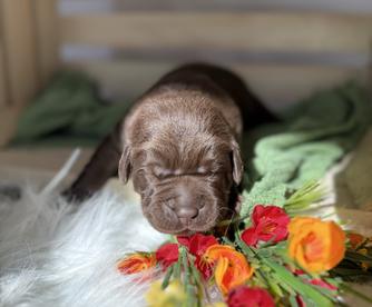 It was great working with Chris and Casey! We are first time puppy owners and a little nervous about getting a puppy at first. Chris and Casey were very knowledgeable about the Labrador breed and answered all questions we had quickly and thoroughly. They sent updated puppy pictures and updated information about our puppy’s vet visit. This made us feel comfortable and confident we were making the right decision purchasing a puppy from them. We could tell they were very responsible breeders. They gave information on the temperament and personalities of the parent dogs which helped us with picking the right puppy for our family. Penny is the best puppy we could have asked for. She is sweet, calm natured and very smart. She has been picking up on training quickly. She is the best puppy and our family couldn’t be happier with her.