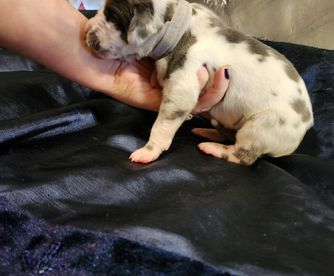 “This price includes Limited AKC Pet only Registration, age appropriate vaccinations, de-wormings, micro- chip, heath certificate, potty training started and Puppy pack. Our pups are handled from day 1 and treated as part of our family. All puppies are the same price, regardless of sex or color. They come with all age appropriate vaccinations and a micro-chip.”