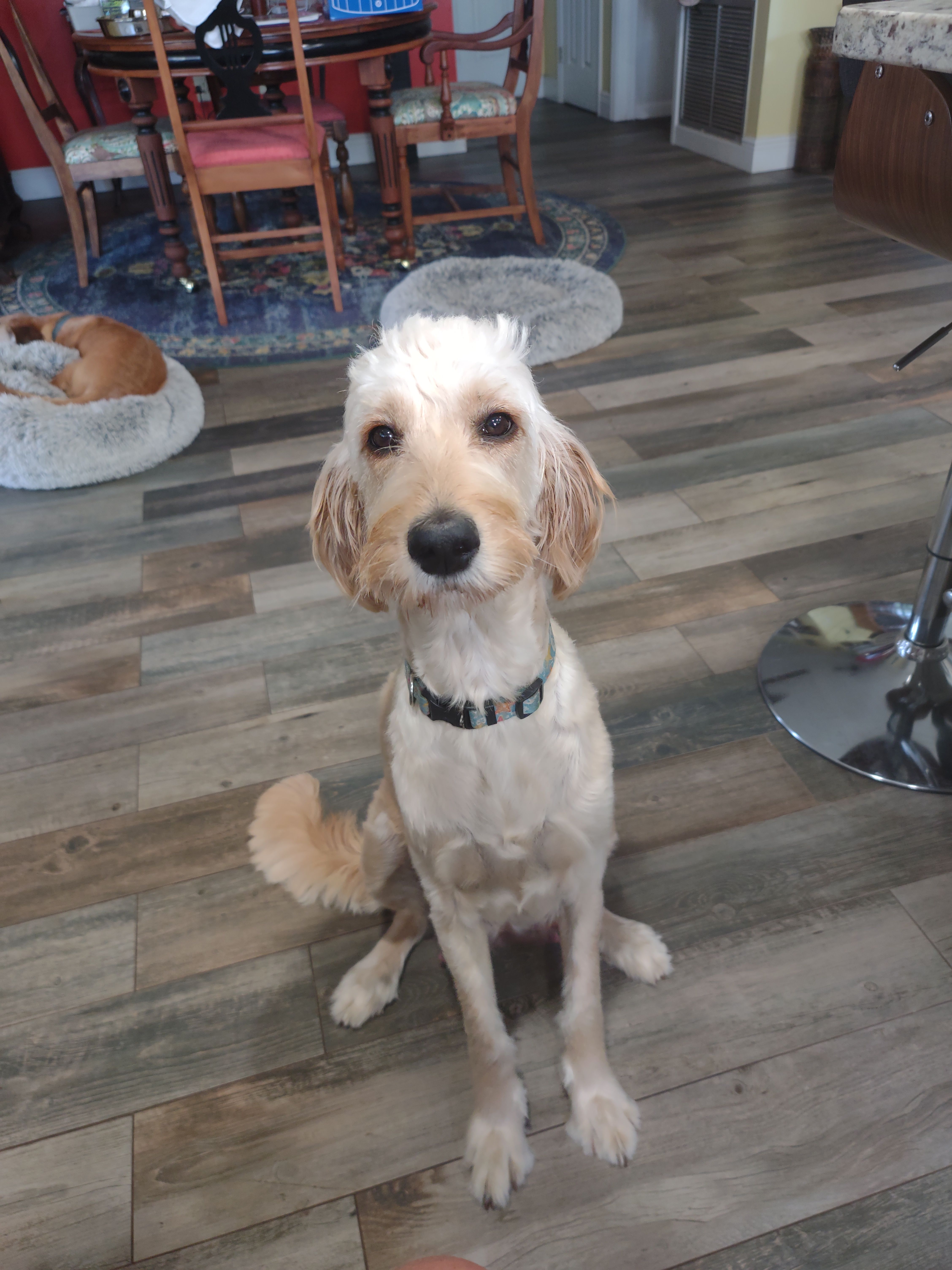 Dixie is a female Goldendoodle almost 5 years old. Carefully selected as a great representative of her breed, Katrina decided to make her part of their program. Katrina has passed Good Dog’s screening process, which involved a review of their breeding practices, environment, and the mental and physical health of their dogs.