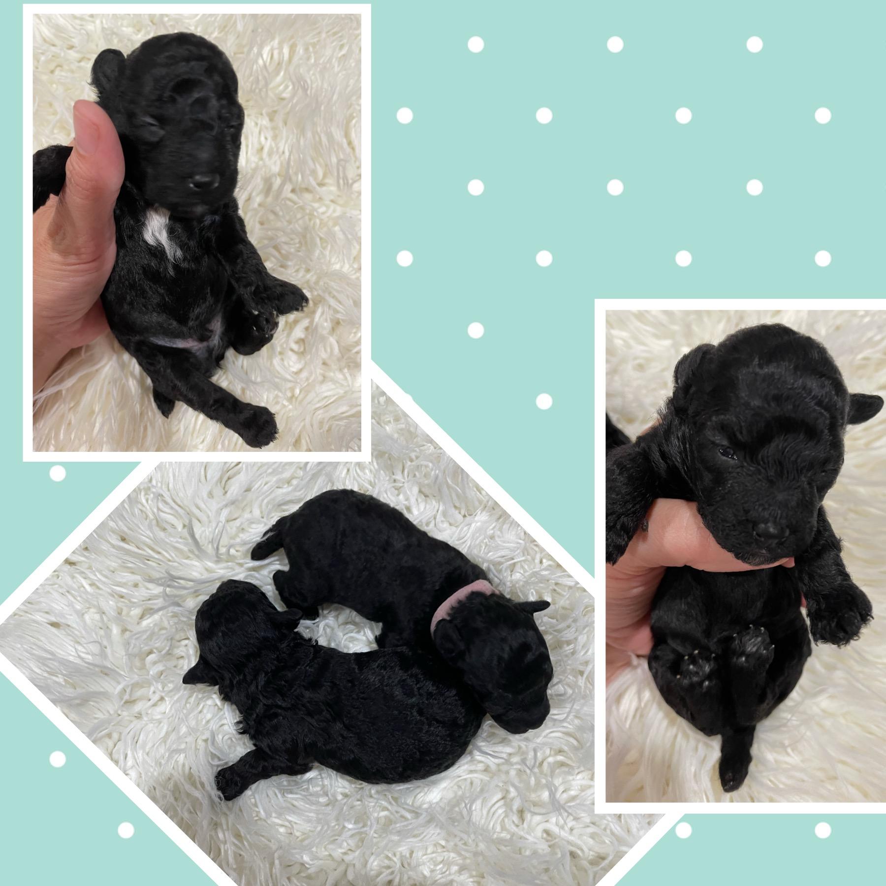 Our puppies include black, red, silver, white, parti, and phantom. Colors will vary depending on the parent dogs.