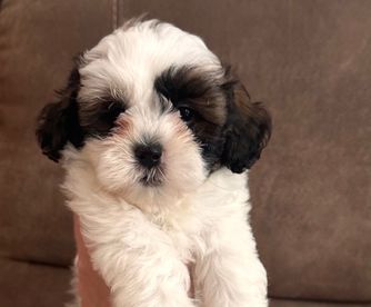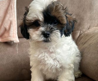 Our Goldendoodle puppies include cream, apricot, and red. Shihpoo puppies include red, gold and white, black white and silver, black and white, and black. Colors will vary depending on the parent dogs.