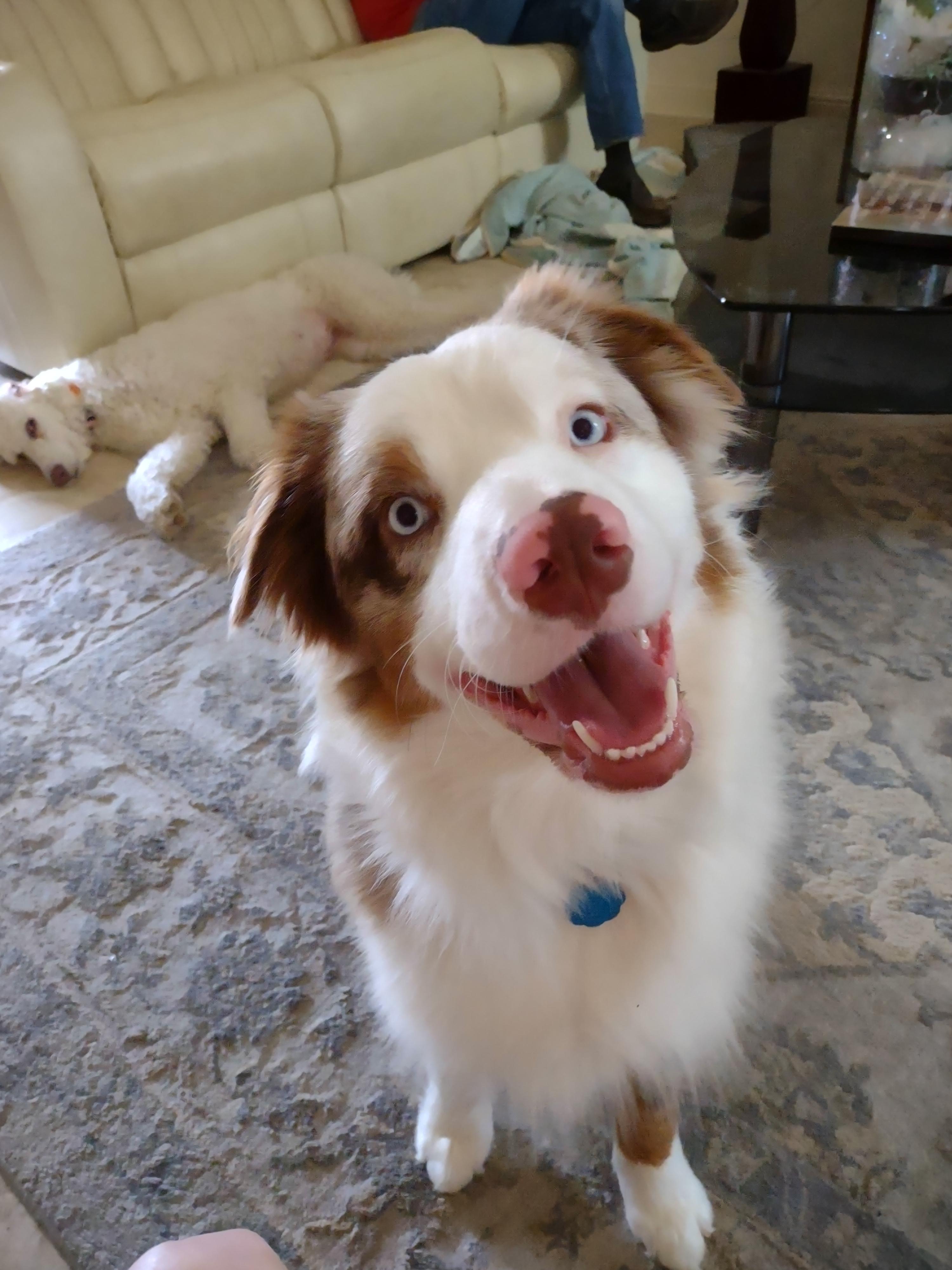 Winston is a male Australian Shepherd. Carefully selected as a great representative of his breed, Jeanette decided to make him part of their program. Jeanette has passed Good Dog’s screening process, which involved a review of their breeding practices, environment, and the mental and physical health of their dogs.