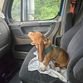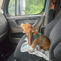Sir Duke is a remarkable puppy he's extremely intelligent , playful and handsome companion for an old truck driver so far Duke has been to 11 new states in his travels. From Georgia all the way to San Diego. This pup might be a Bassett but he's really an Attention Hound 😆. Always getting admirers wanting to pet him and touch his big floppy ears . All I can say is that he has filled the void left by my old traveling buddy Buster who left me way to soon. I look forward to him and me adventuring out on the road for many years to come. Thank you Miss Stacy for talking me into getting him.