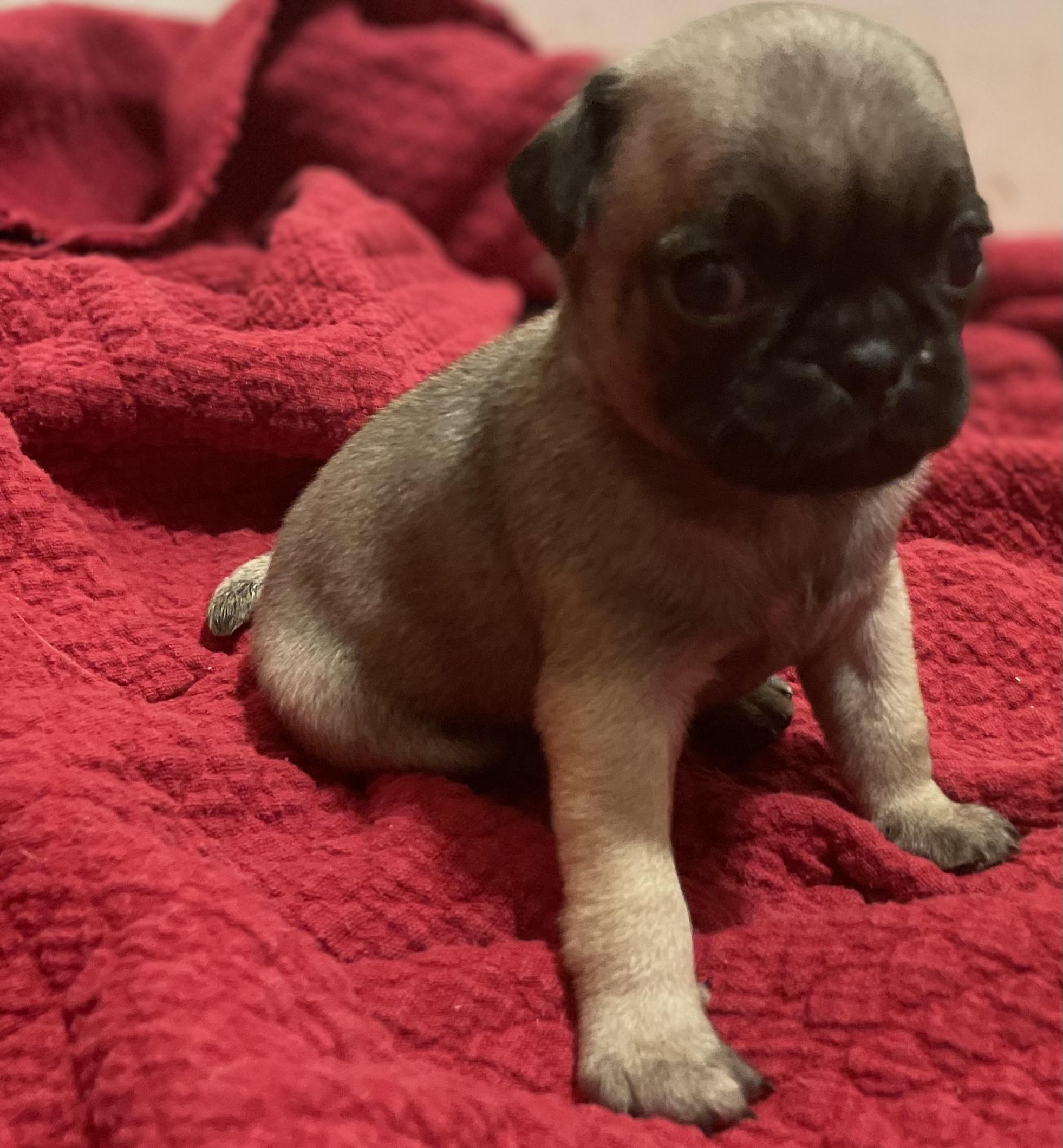 Our Pug puppies include black and fawn. Pembroke Welsh Corgi puppies are red. Colors will vary depending on the parent dogs.