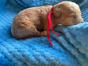Ruby is a female Goldendoodle. Carefully selected as a great representative of her breed, Sharon decided to make her part of their program. Sharon has passed Good Dog’s screening process, which involved a review of their breeding practices, environment, and the mental and physical health of their dogs.