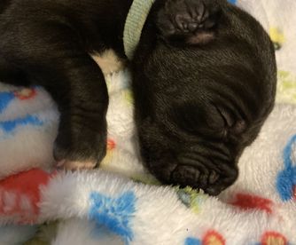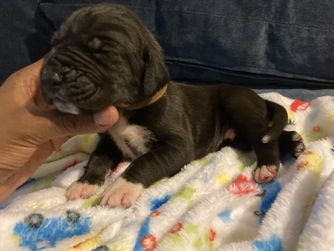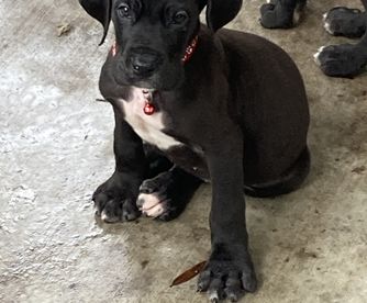 Our puppies include harlequin and black. Colors will vary depending on the parent dogs.