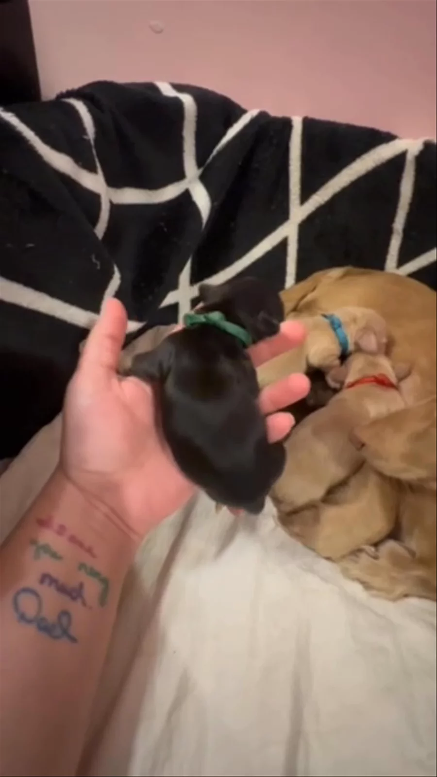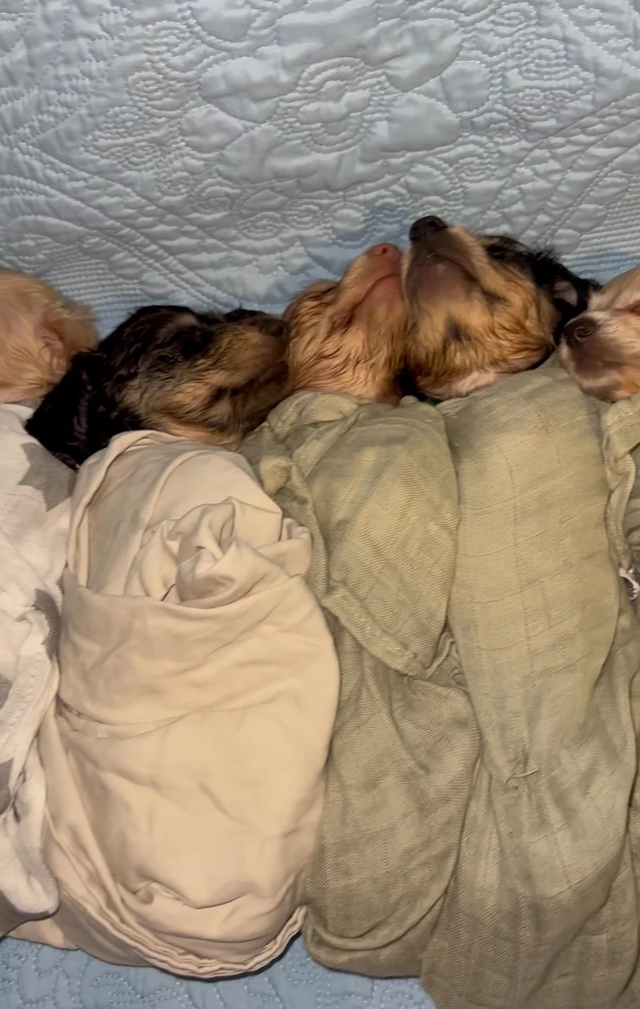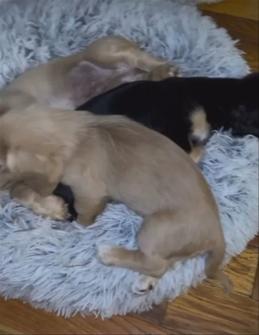 Jinx on his back while his sister Kali chews his nose 🤣 and Jett is knocked out!!
