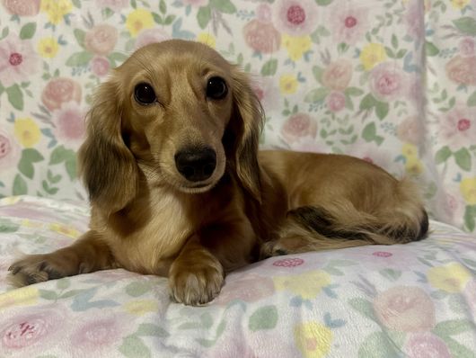 “This price includes an AKC mini long-haired cream Dachshund with genetic testing, vaccinations, worming, a microchip to be placed by the new pet parent, and plenty of love.”