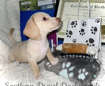 I adopted my precious mini dachshund, Henry, from Southern Drawl Dachshunds, and it was the best experience. They provided me with weekly updates on my little boy, photo shoots so I could see his growth, and were such a help to me as Henry is my first puppy. Everyone I introduce Henry to LOVES him. They comment on his beautiful coat, his handsome face, and his precious personality. Honestly, ALL of his littermates are beautiful. When the time comes to get Henry a buddy, I’ll definitely be calling on Southern Drawl Dachshunds.