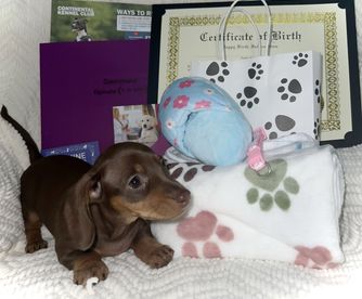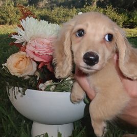 I was in the market for a dachshund and I found the perfect match with Elizabeth. Cash is the sweetest boy and is a very loving companion. Elizabeth was a huge help in the whole process. She helped answer all my questions and gave me good knowledge on the dog.
