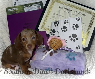 My experience with Elizabeth from Southern Drawl Dachshunds has been great! Elizabeth has provided me with updates on my Puppy on a regular basis. She treats these puppies with the utmost care and love. I couldn’t ask for anything else for my sweet puppy Gracie. I can’t wait to pick her up soon.