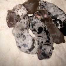 Our puppies include piebald, cream, red, brindle, black and cream, chocolate and cream, chocolate and tan, black and tan, and dapple. Colors will vary depending on the parent dogs.